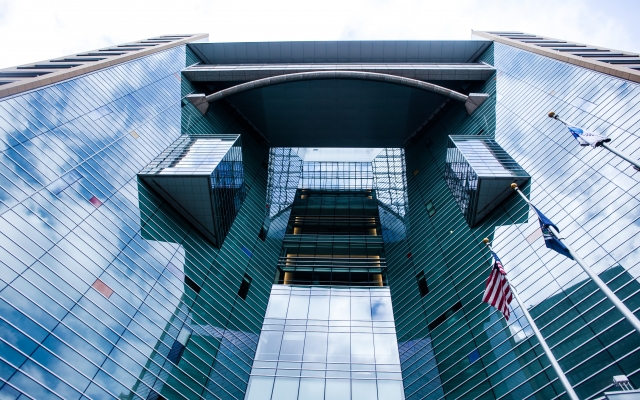 Le casino Motor City, visible depuis l’autoroute en arrivant sur Détroit.